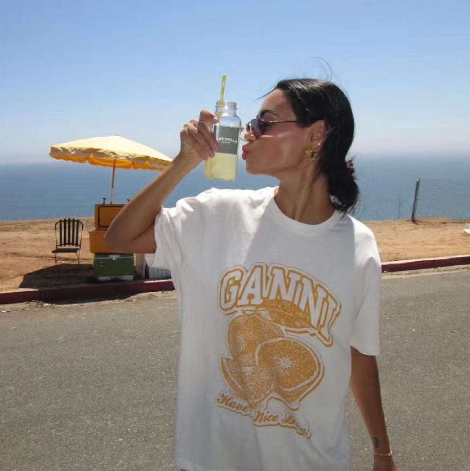 Fashionable printed creative pattern, women's retro washed cotton T-shirt - thick cotton, round neck short sleeve, unique style, machine washable but not dry cleanable, casual wear for spring and summer, women's T-shirt