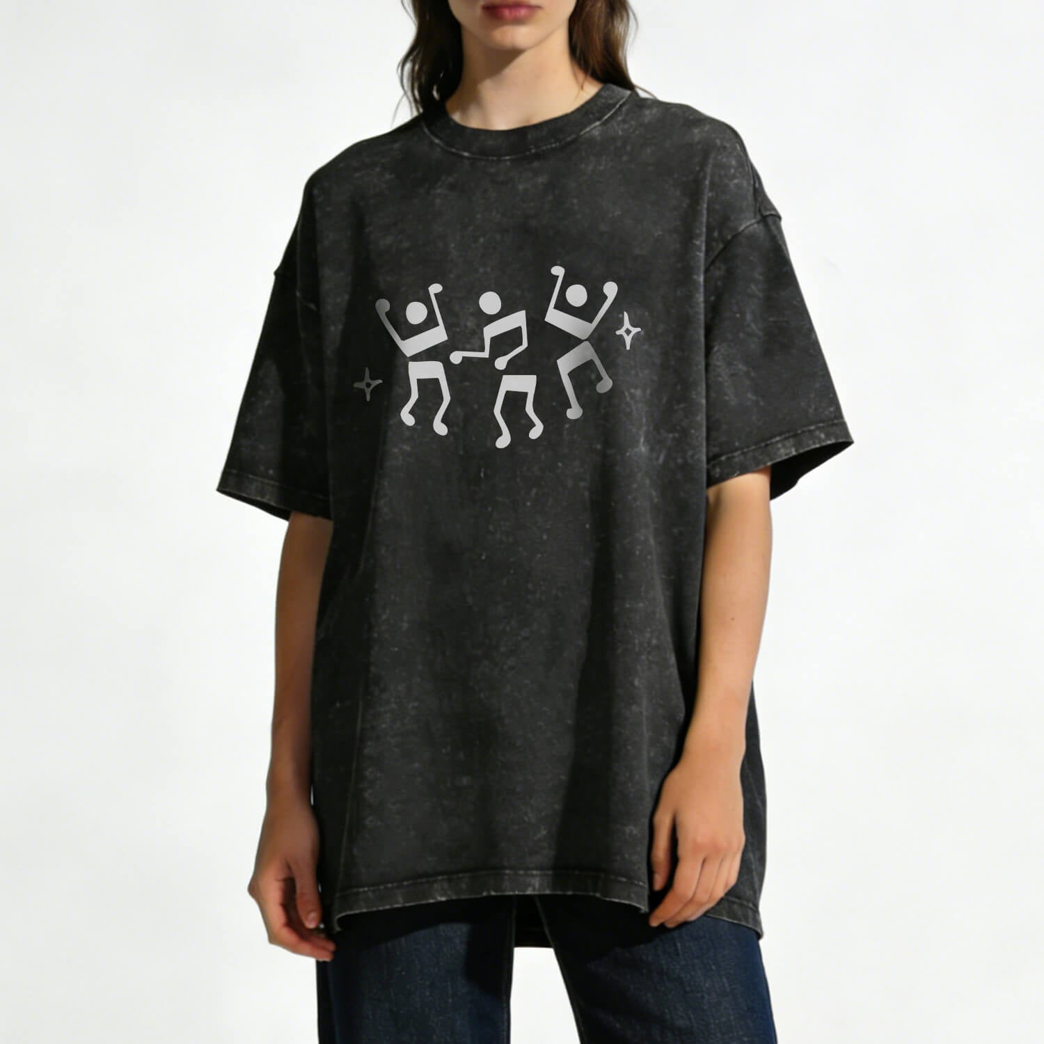 This Dancing Music Notes Washed T-Shirt features playful stick figures formed with musical notes, capturing the joy, energy, and freedom that music brings. Simple, fun, and full of rhythm — it’s made for people who love to dance through life.