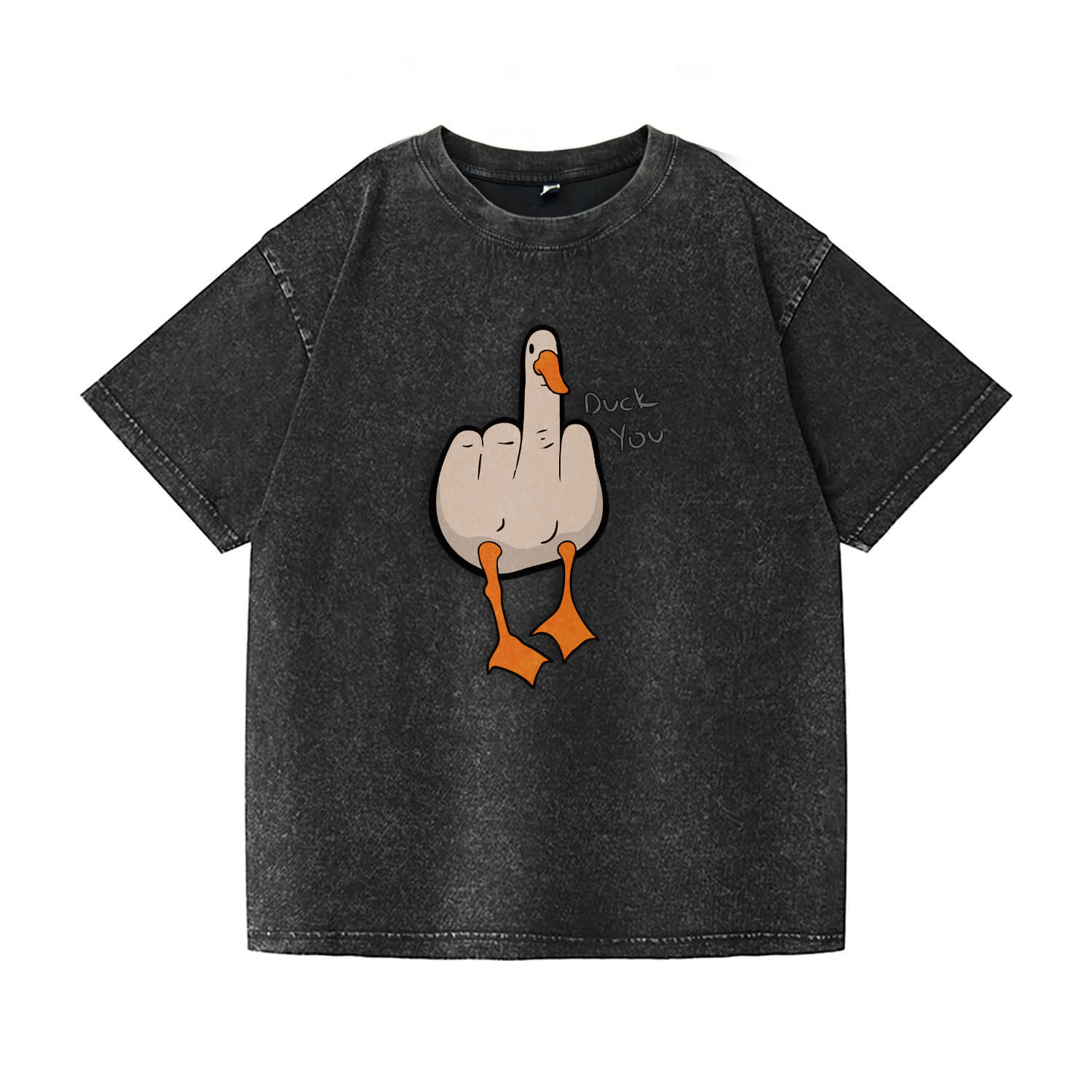 Make a bold statement with this Duck You Washed T-Shirt. Crafted from soft, breathable washed cotton, this unisex graphic tee features a playful duck illustration with an edgy attitude.