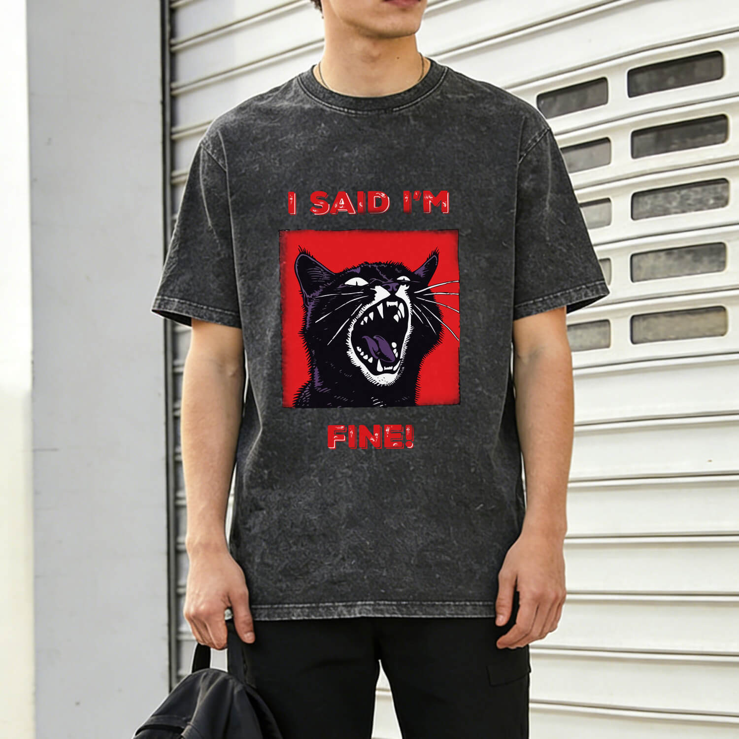 Level up your sarcastic style with our I Said I’m Fine Angry Black Cat Graphic Washed T-Shirt—the perfect pick for anyone who’s ever grit out “I’am fine” while screaming internally.