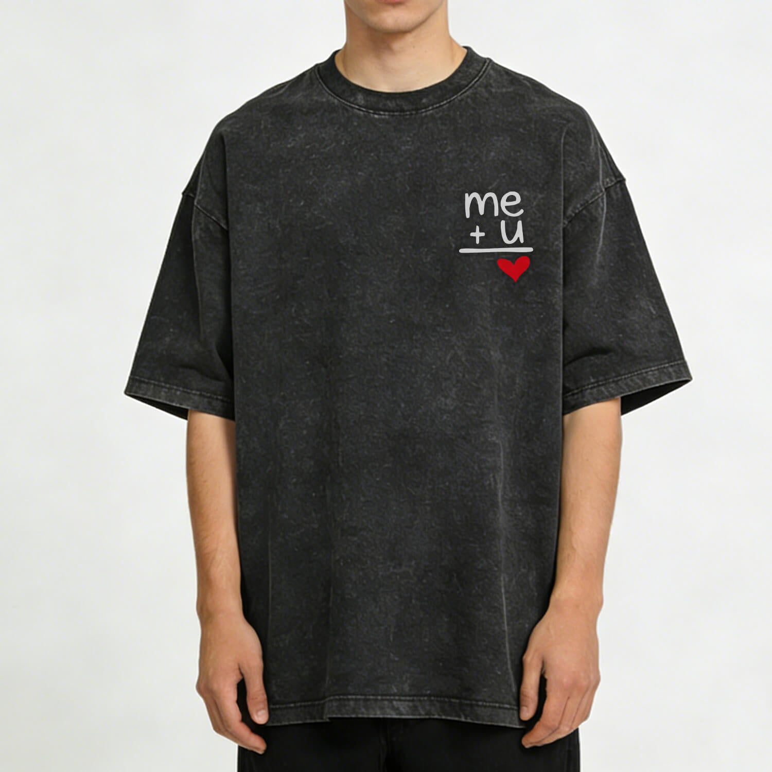 Celebrate your favorite person with this "Me + You = Love" washed tee. The minimalist “me + u” graphic with a tiny red heart is printed on the chest, offering a quiet, heartfelt way to show your love—whether you’re matching with your partner, gifting it to a best friend, or just wearing it to spread cozy vibes.