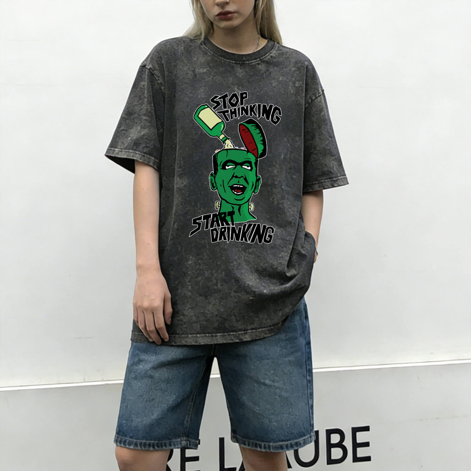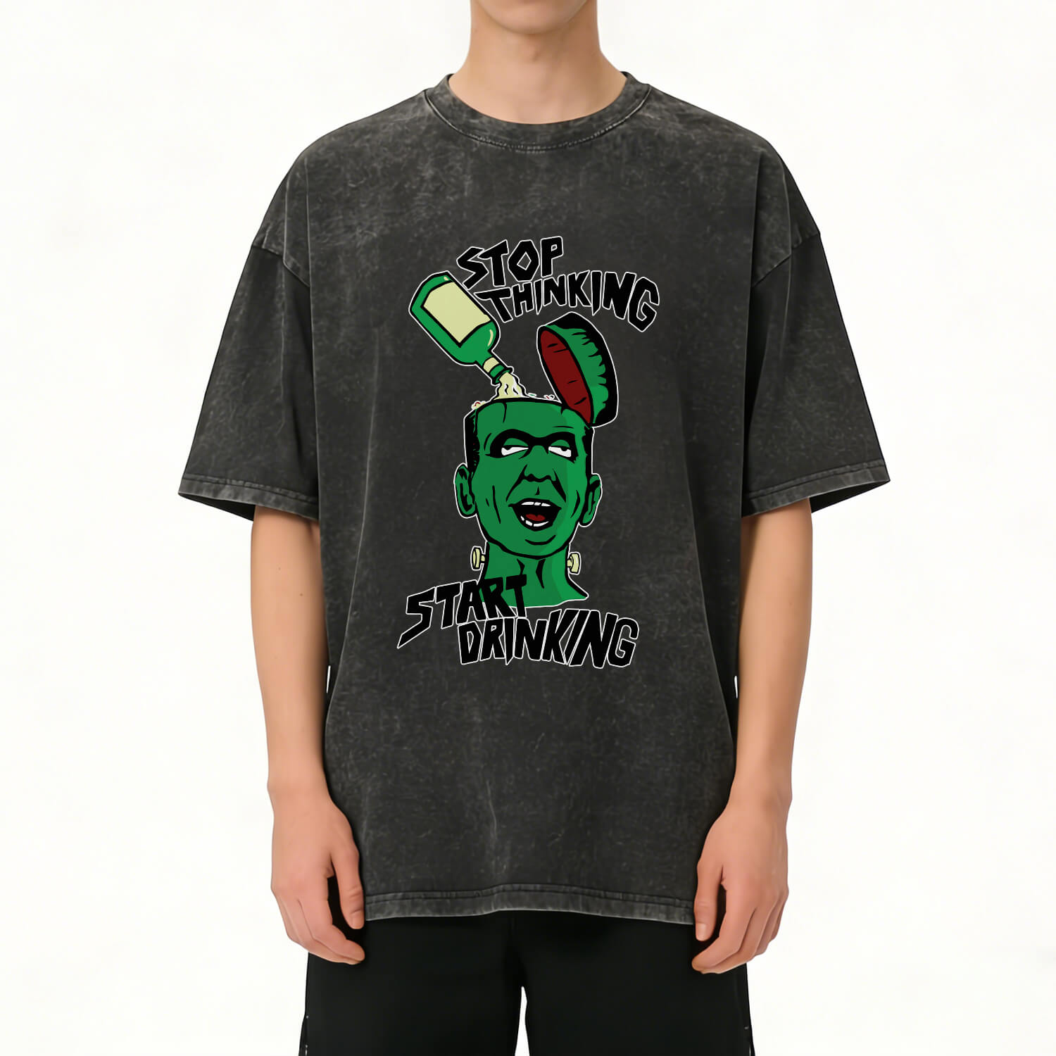 Stop Thinking Start Drinking Washed T-Shirt PT100