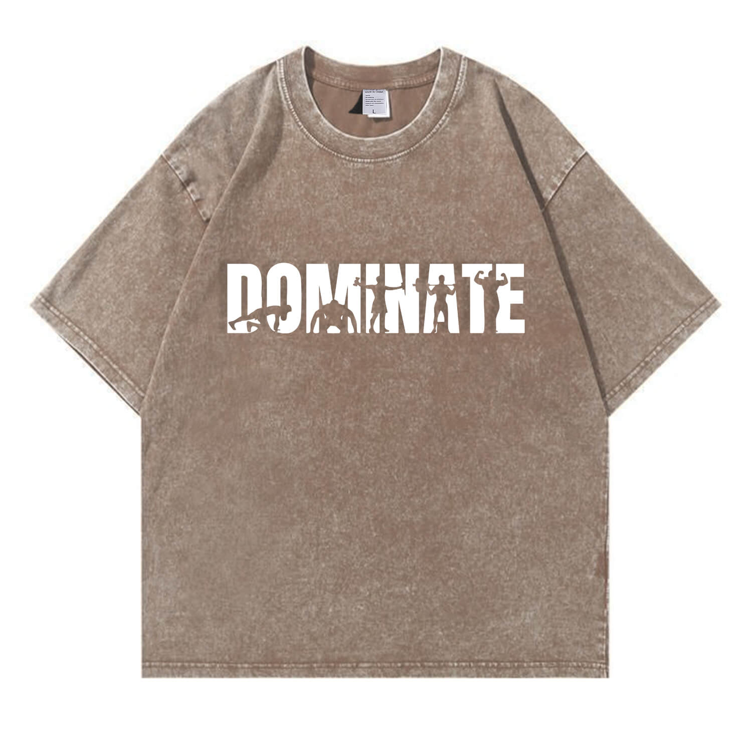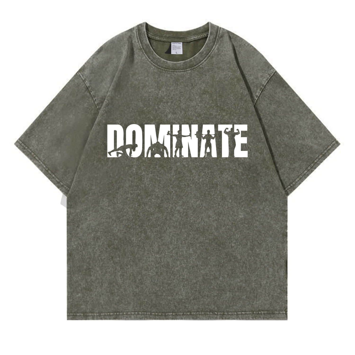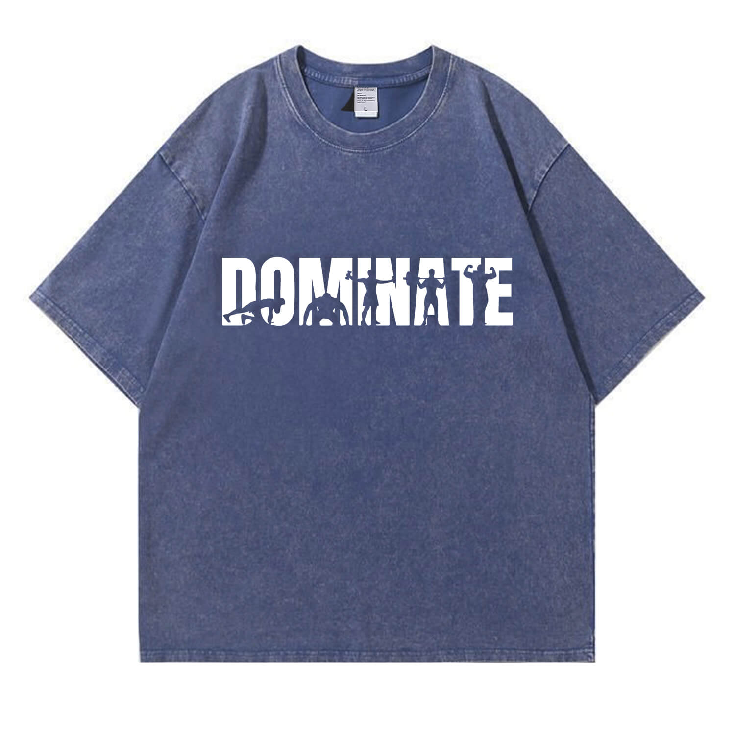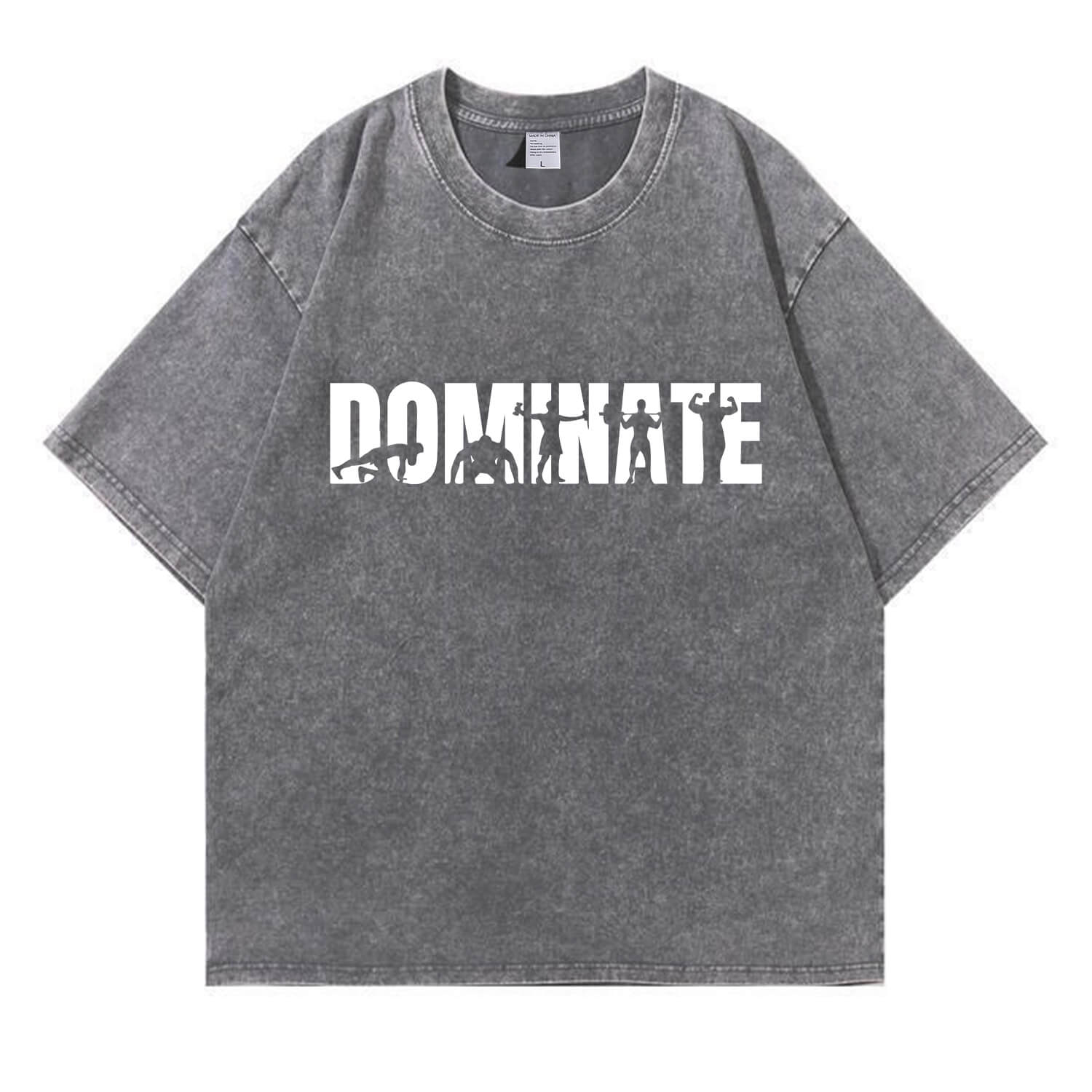 This “DOMINATE” fitness graphic T-shirt features bold lettering filled with powerful workout silhouettes, symbolizing strength, discipline, and relentless progress. It’s not just a word — it’s a mindset.