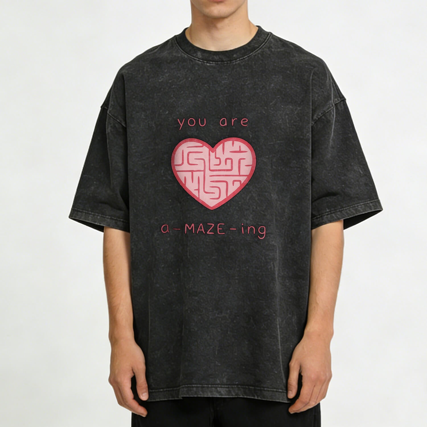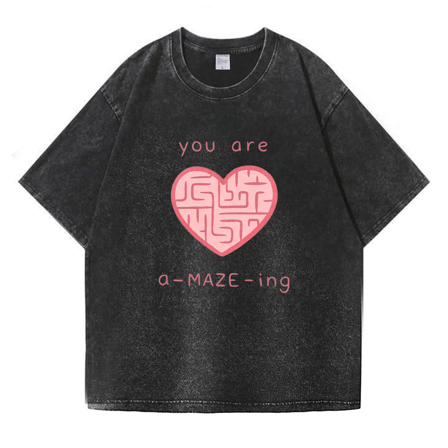 The design features a soft pink heart-shaped maze paired with the punny slogan “You Are A-Maze-ing”—a sweet, lighthearted way to tell someone (or yourself!) how amazing they are. It’s perfect for Valentine’s Day, Galentine’s hangouts, or any day you want to add a cozy, retro-inspired dose of positivity to your outfit.