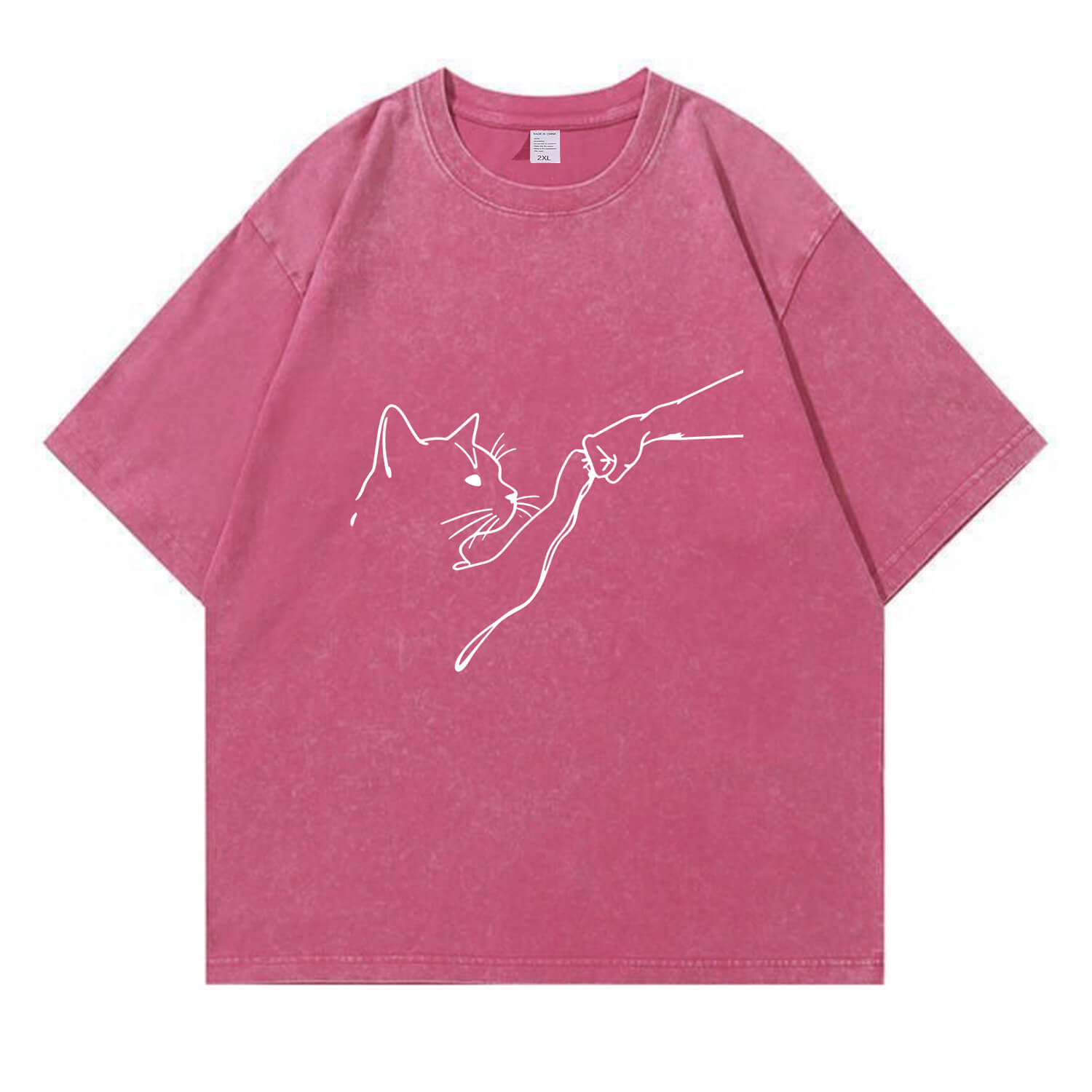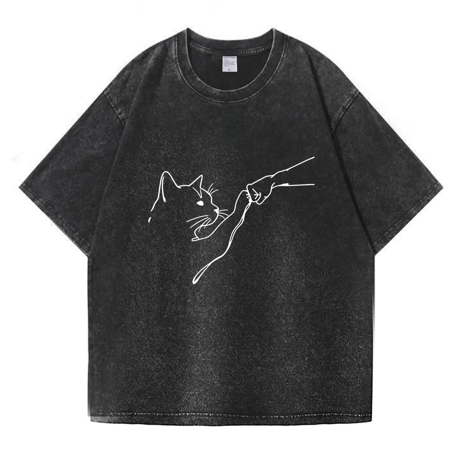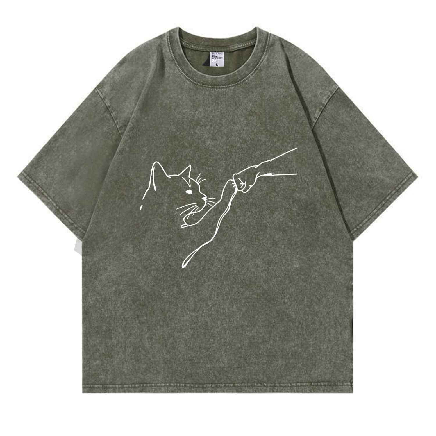 Show off your playful side with the Fist Bump with Cat Pattern Washed T-Shirt — a casual graphic tee that blends humor, style, and everyday comfort. Featuring a bold illustration of a fist bumping a cat, this design captures the perfect mix of urban attitude and feline charm that cat lovers and streetwear fans will instantly adore.